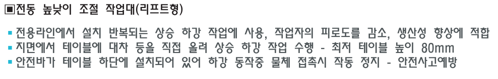 전동 높낮이 조절 작업대 (리프트형)